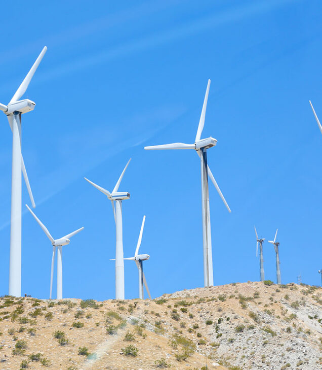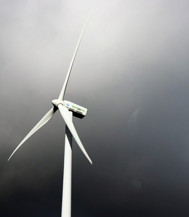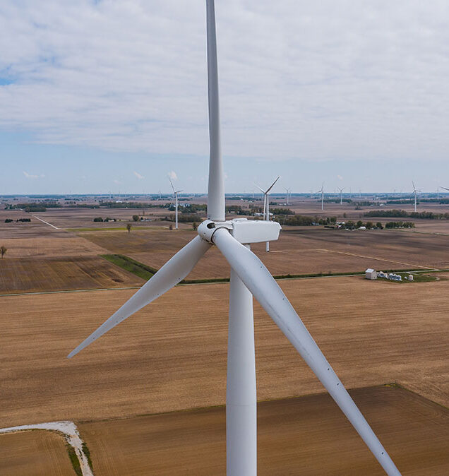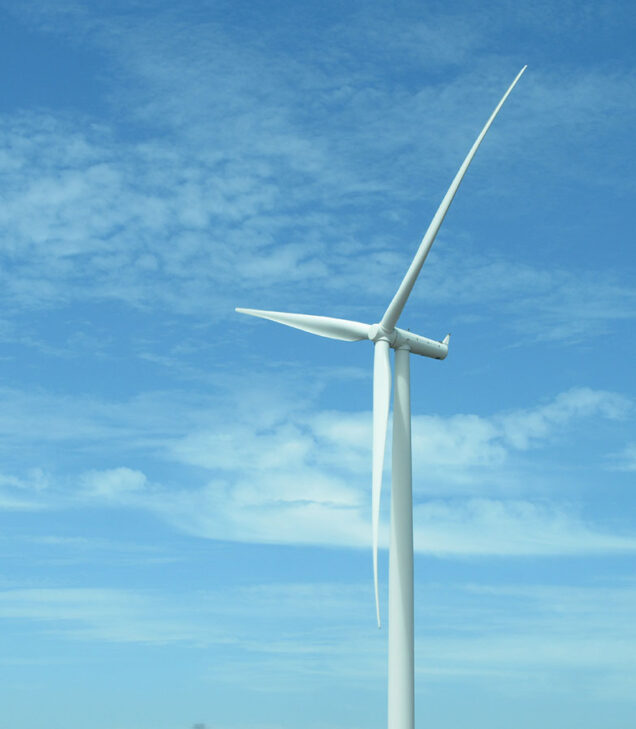 Wind turbines, like windmills, are mounted on a tower to capture the most energy. At 100 feet (30 meters) or more above ground, they can take advantage of the faster and less turbulent wind. Turbines catch the wind’s energy with their propeller-like blades. Usually, two or three blades are mounted on a shaft to form a rotor.