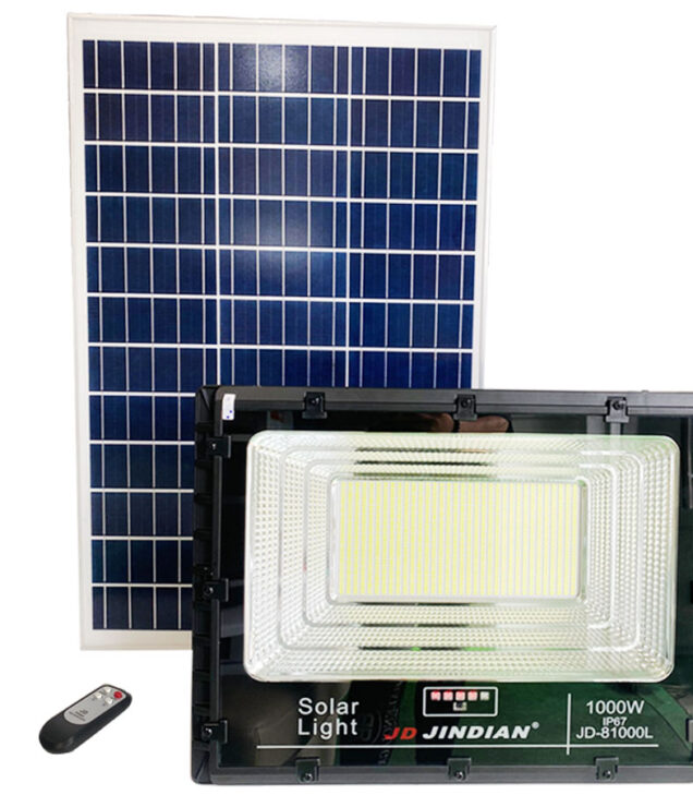 Cheap solar flood light 300W Jindian JD-8300L is used for garden lighting, walkway lighting, fence gate lighting, sign lighting,… very convenient and safe, no need to. complicated wiring, just need to install the lights to light up, very economical.